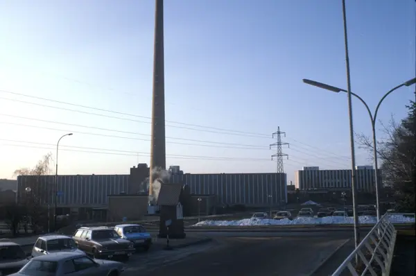 Byggeplass. Utvidelse av Tiedemanns fabrikk på Hovin i 1982-83.