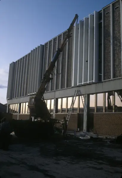 Byggeplass. Utvidelse av Tiedemanns fabrikk på Hovin i 1982-83.