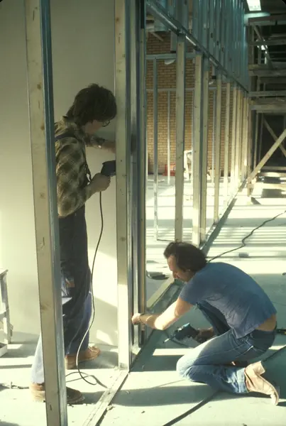 Byggeplass. Utvidelse av Tiedemanns fabrikk på Hovin i 1982-83.
