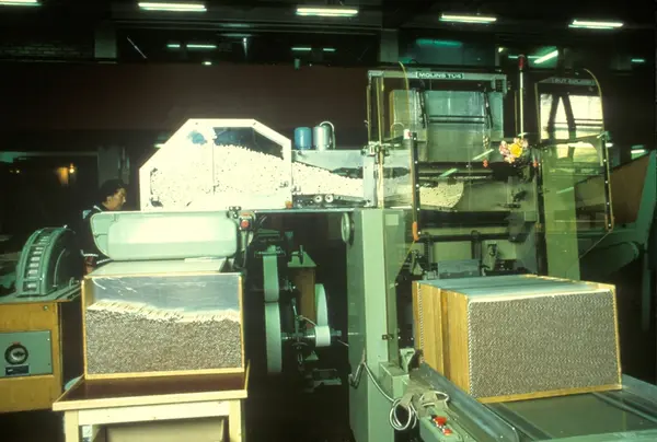 Produksjon av tobakk hos Tiedemanns Tobaksfabrik på Hovin.