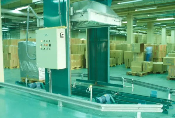 Pakking av esker i plast hos Tiedemanns Tobaksfabrik på Hovin.