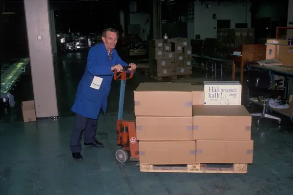 Fabrikkinteriør. Pakkeavdeling. Produksjon av tobakk hos Tiedemanns Tobaksfabrik.
