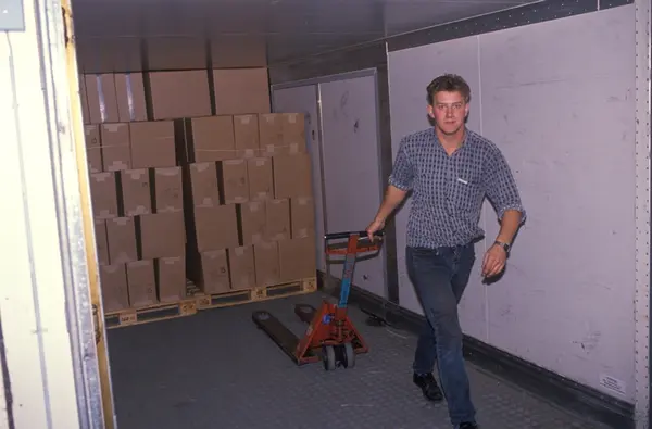 Fabrikkinteriør. Pakkeavdeling. Produksjon av tobakk hos Tiedemanns Tobaksfabrik.
