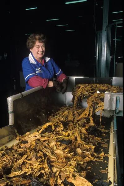 Fabrikkinteriør. Produksjon av tobakk hos Tiedemanns Tobaksfabrik på Hovin.