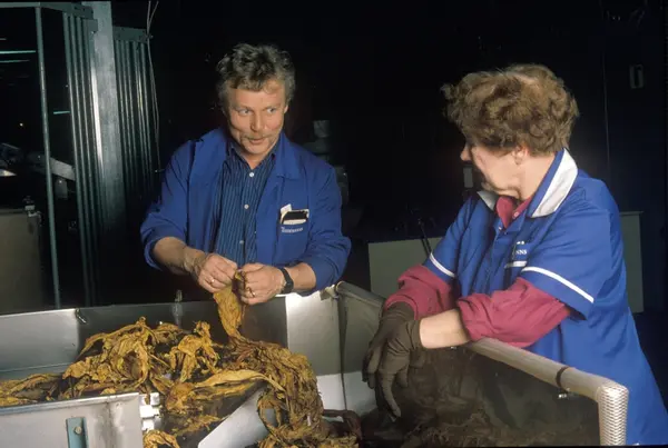 Fabrikkinteriør. Produksjon av tobakk hos Tiedemanns Tobaksfabrik på Hovin.