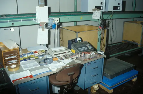 Fabrikkinteriør. Produksjon av sigaretter hos Tiedemanns Tobaksfabrik på Hovin. Fra bildeserie brukt i forbindelse med Tiedemanns tobakkskurs.