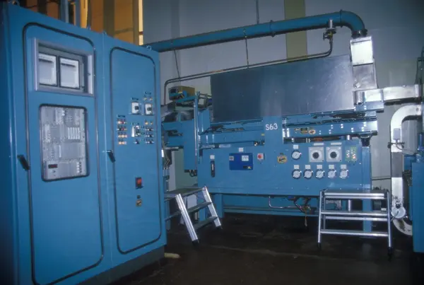 Fabrikkinteriør. Produksjon av sigaretter hos Tiedemanns Tobaksfabrik på Hovin. Fra bildeserie brukt i forbindelse med Tiedemanns tobakkskurs.