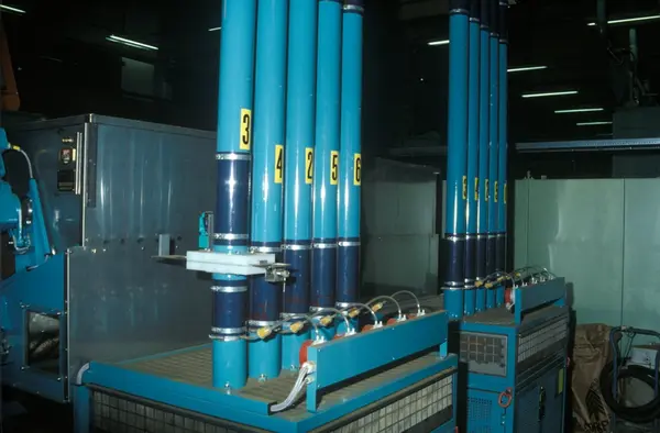 Fabrikkinteriør. Produksjon av sigaretter hos Tiedemanns Tobaksfabrik på Hovin. Fra bildeserie brukt i forbindelse med Tiedemanns tobakkskurs.