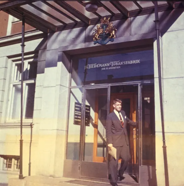 Inngang til Tiedemanns Tobaksfabrik. Fra Tiedemanns kursmateriell "Fra plantasjen til pipen".