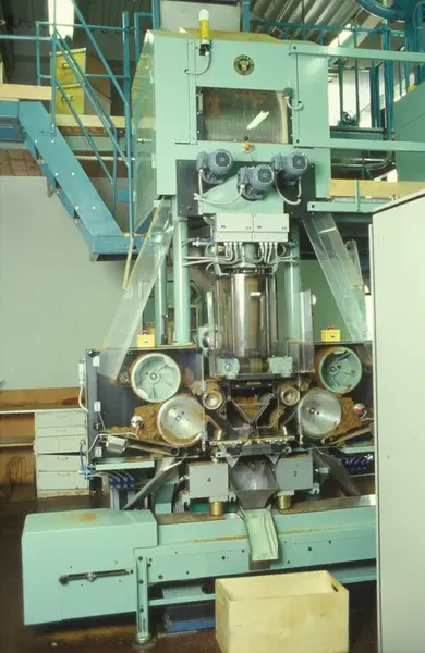Fabrikkinteriør. Produksjon av tobakk hos Tiedemanns Tobaksfabrik på Hovin. Fra billedserie laget i forbindelse med Tiedemanns interne tobakkskurs.