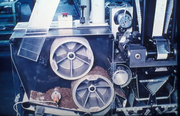 Fabrikkinteriør. Produksjon av tobakk hos Tiedemanns Tobaksfabrik på Hovin. Fra billedserie laget i forbindelse med Tiedemanns interne tobakkskurs.