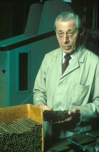 Fabrikkinteriør. Produksjon av sigarer hos Tiedemanns Tobaksfabrik.