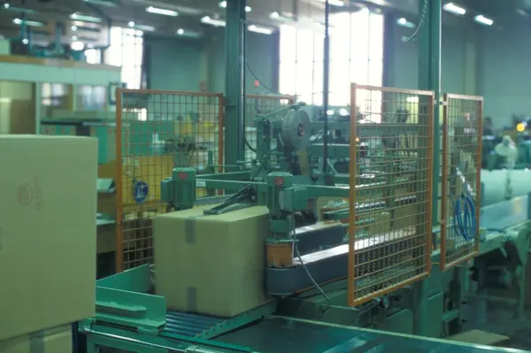 Fabrikkinteriør. Sigarett pakkeavdeling. Produksjon av tobakk hos Tiedemanns Tobaksfabrik.
