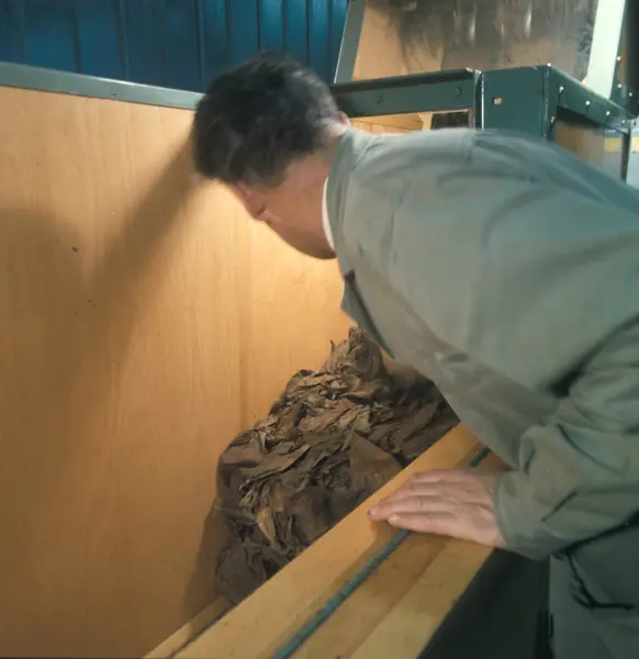 Fabrikkinteriør. Sigaravdelingen. Produksjon av tobakk hos Tiedemanns Tobaksfabrik.