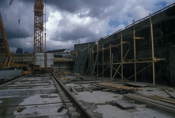 Bygningskonstruksjon hos Tiedemanns Tobaksfabrik på Hovin.