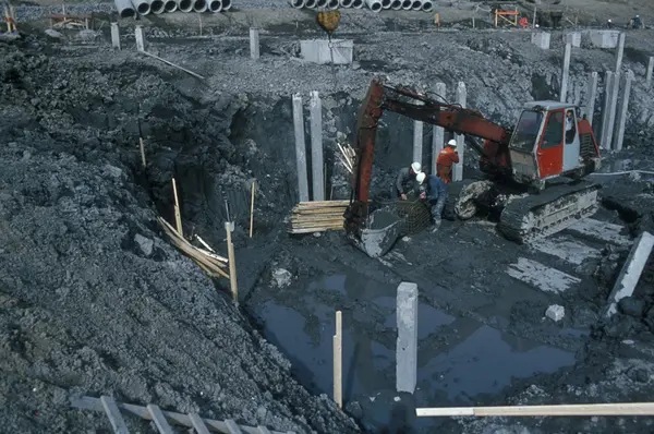 Bygningskonstruksjon hos Tiedemanns Tobaksfabrik på Hovin.