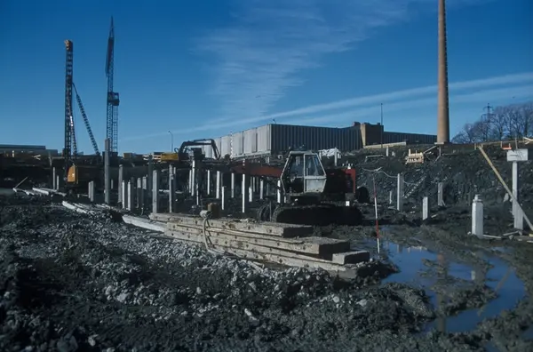 Bygningskonstruksjon hos Tiedemanns Tobaksfabrik på Hovin.