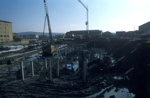 Bygningskonstruksjon hos Tiedemanns Tobaksfabrik på Hovin.