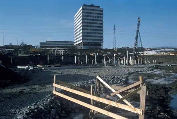 Bygningskonstruksjon hos Tiedemanns Tobaksfabrik på Hovin.
