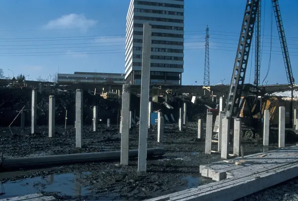 Bygningskonstruksjon hos Tiedemanns Tobaksfabrik på Hovin.