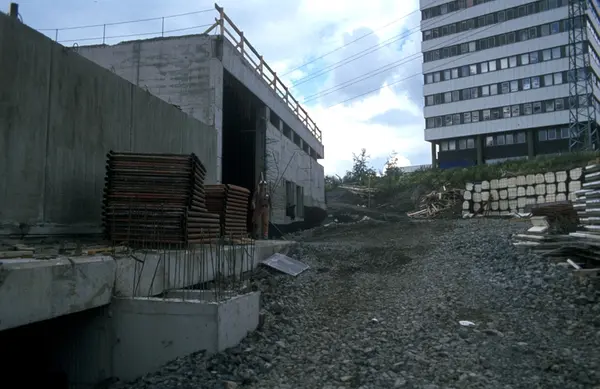 Bygningskonstruksjon hos Tiedemanns Tobaksfabrik på Hovin.