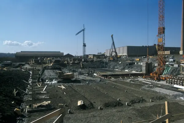 Bygningskonstruksjon hos Tiedemanns Tobaksfabrik på Hovin.