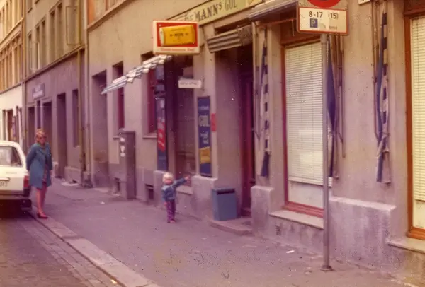Tobakksbutikk med reklameskilt fra Tiedemann.
