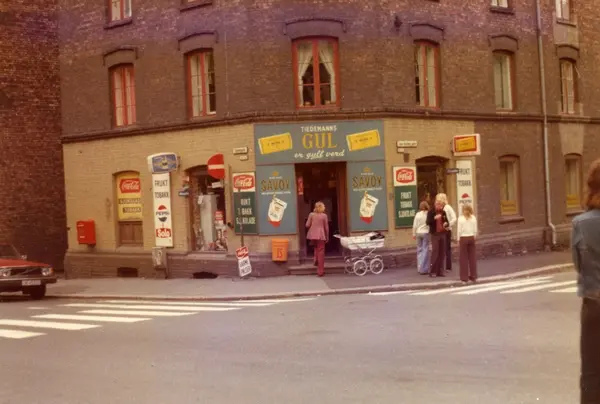 Tobakksbutikk med reklameskilt fra Tiedemann.
