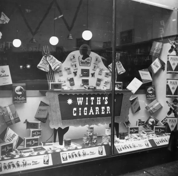 Vindusutstilling hos Endregård tobakk.