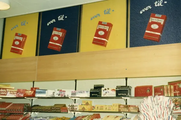 Reklame for South State sigaretter på Manglerud Super i Oslo.
