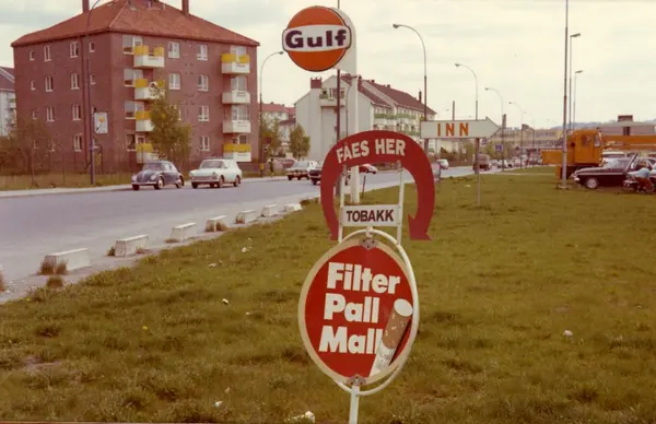 Skilt med reklame for Pall Mall sigaretter i krysset Hovinveien/Grensenveien i Oslo.