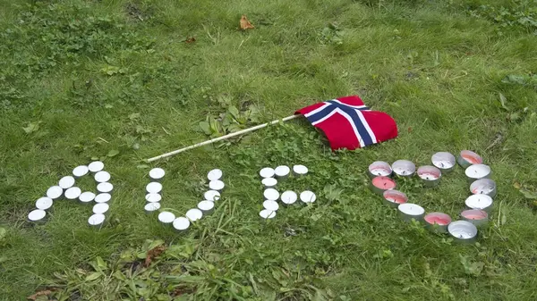 "Sorg i det offentlige rom". AUF skrevet med telys ved Oslo Domkirke.