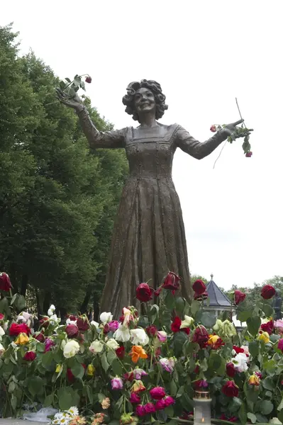 "Sorg i det offentlige rom". Blomster, lys og hilsener lagt ned ved Per Ungs statue av Wenche Foss utenfor Nationaltheatret.
