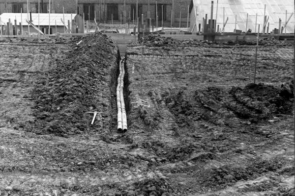 Konstruksjon av lagerbygning på Kampen i Oslo, Kampen III, i 1953.
