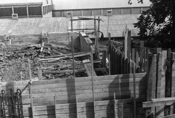 Konstruksjon av lagerbygning på Kampen i Oslo, Kampen III, i 1953.