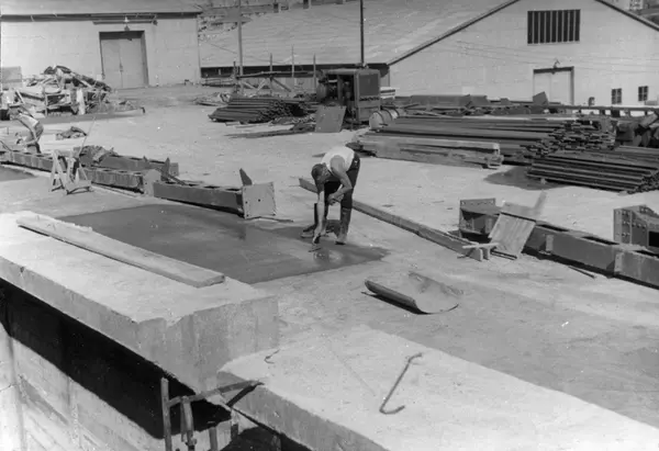 Konstruksjon av lagerbygning på Kampen i Oslo, Kampen III, i 1953.