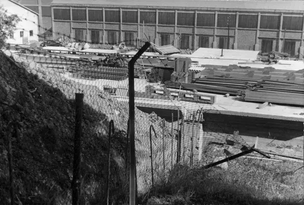 Transport av stålkontruksjon. Konstruksjon av lagerbygning på Kampen i Oslo, Kampen III, i 1953.
