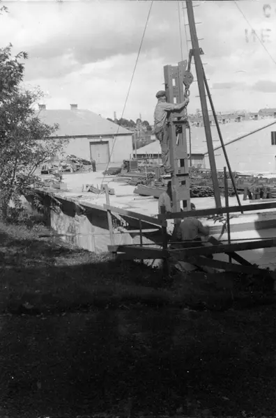 Konstruksjon av lagerbygning på Kampen i Oslo, Kampen III, i 1953.