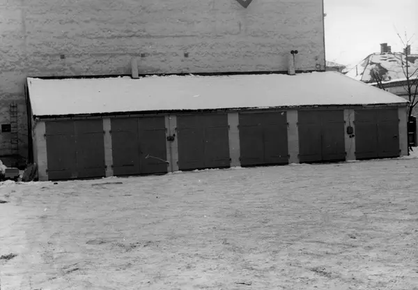Konstruksjon av garasje og lager ved Tiedemanns Tobaksfabrik i Stensberggate i 1954.