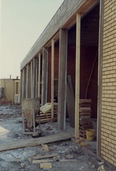 Byggeplass. Konstruksjon av Tiedemanns Tobaksfabrik på Hovin i 1969.