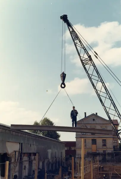 Byggeplass. Konstruksjon av Tiedemanns Tobaksfabrik på Hovin i 1969.