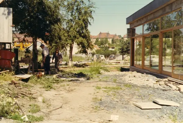 Byggeplass. Konstruksjon av Tiedemanns Tobaksfabrik på Hovin i 1969.