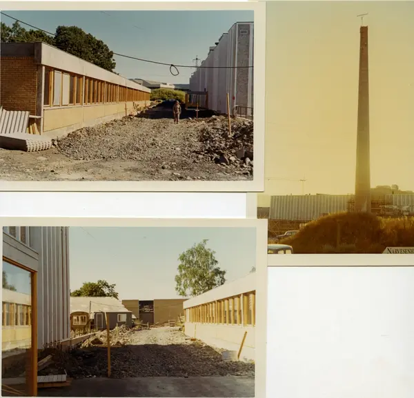 Byggeplass. Konstruksjon av Tiedemanns Tobaksfabrik på Hovin i 1969.