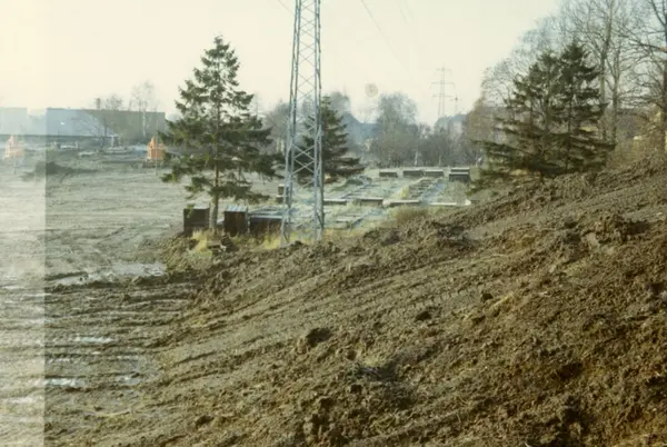 Byggeplass. Konstruksjon av Tiedemanns Tobaksfabrik på Hovin i 1966.