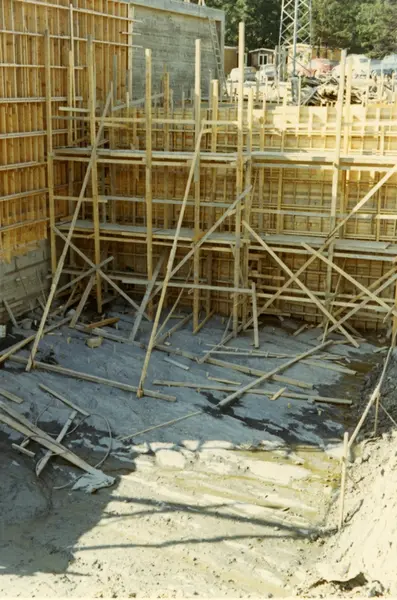 Byggeplass. Konstruksjon av Tiedemanns Tobaksfabrik på Hovin i 1967.