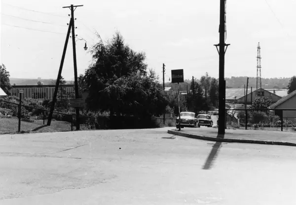 J. L. Tiedemanns Tobaksfabrik på Hovin i 1968. Fotografiet ble tatt i forbindelse med konstruksjonen av fabrikken og viser en gate i området rundt byggeplassen og den nye fabrikken.