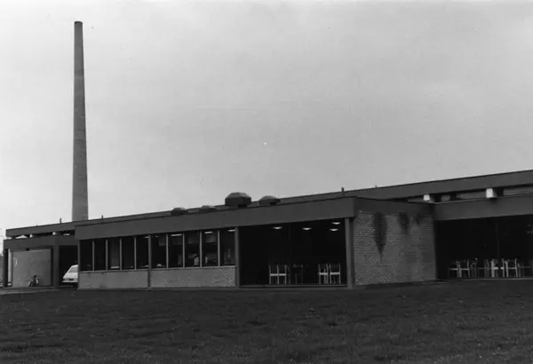J. L. Tiedemanns Tobaksfabrik på Hovin i 1968. Fotografiet er tatt i forbindelse med konstruksjonen av fabrikken.