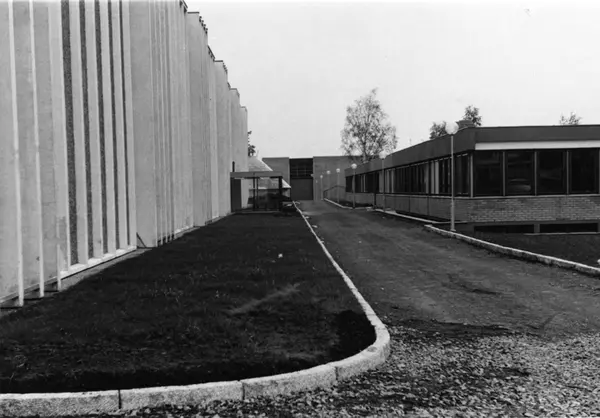 J. L. Tiedemanns Tobaksfabrik på Hovin i 1968. Fotografiet er tatt i forbindelse med konstruksjonen av fabrikken.