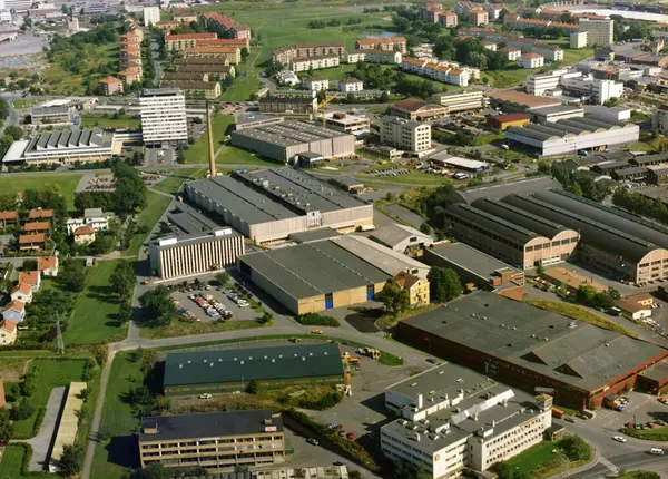 Flyfoto av J. L. Tiedemanns Tobaksfabrik på Hovin.
