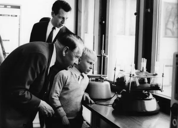 Omvisning i J. L. Tiedemanns Tobaksfabriks nye anlegg på Hovin i 1969 i forbindelse med innvielsen av fabrikken.